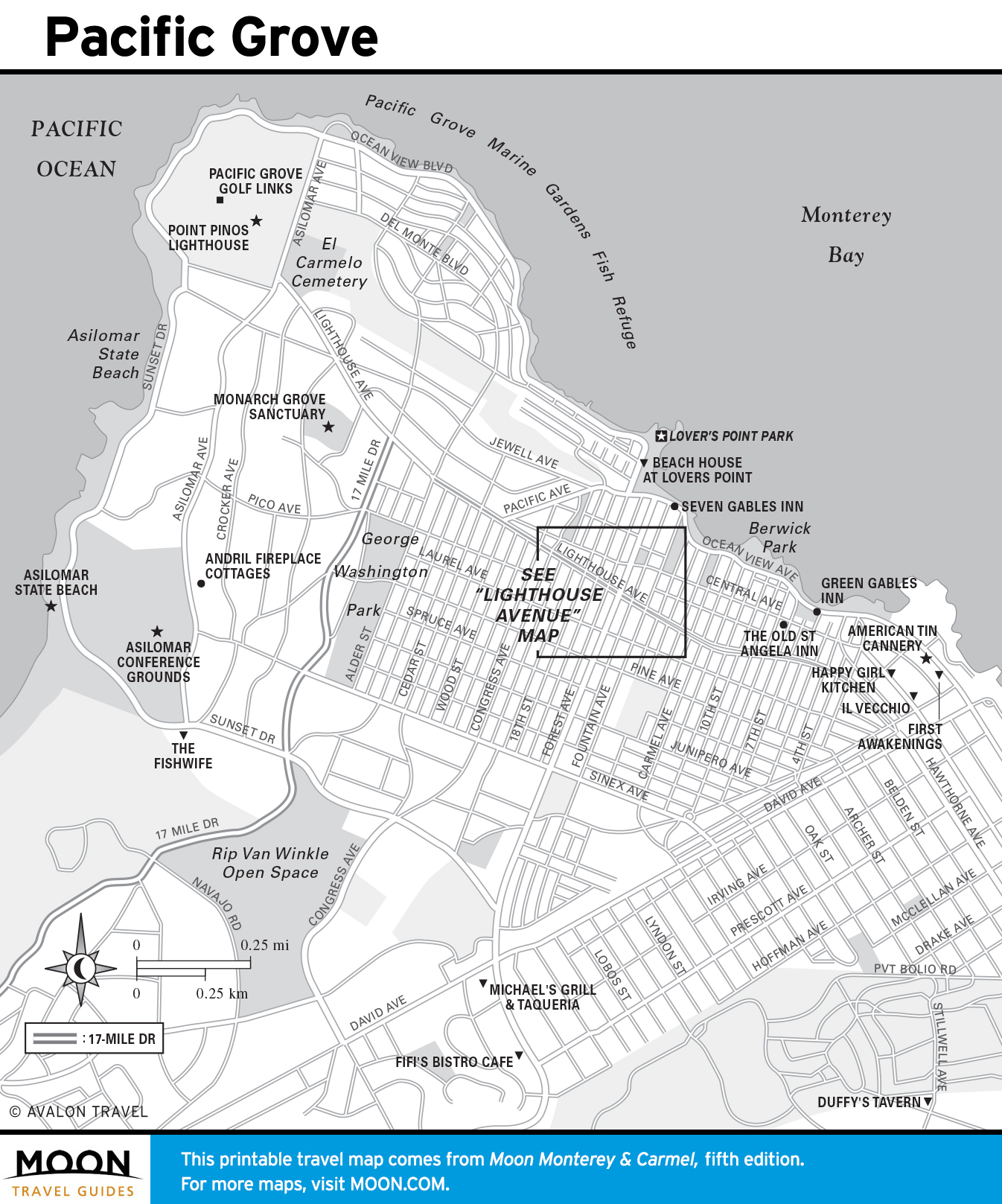 Travel map of Lighthouse Avenue in Pacific Grove