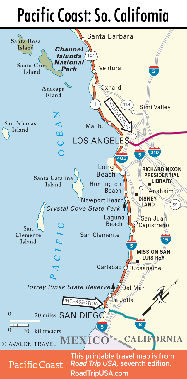 As you enter Southern California, the rivers and trees of the north give way to golden beaches, grassy bluffs, and denser populations. Enjoy the sleepy seaside charm of Santa Barbara—with its red-tile roofs, abundant stucco structures, and pleasant climate, the town has a decidedly Mediterranean vibe. Grab tacos and head down to Stearns Wharf to join the throngs of joggers, in-line skaters, and volleyball players on the beach.