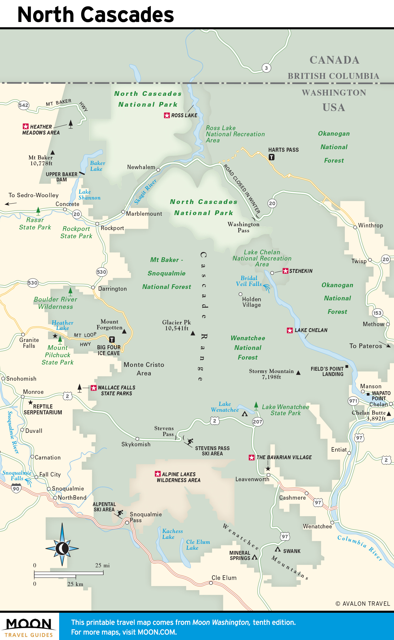 The 325 mi (525 km) of US-2 across Washington State contain enough contrasting landscapes to fill many states. West to east, the route begins at the industrial fringes of Seattle and Puget Sound, passing through a couple of Victorian-era towns before climbing steeply up toward the towering peaks, dense forests, and pristine lakes of the Cascade Mountains.